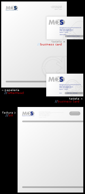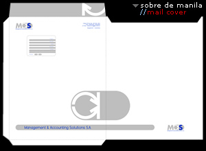 La unidad visual presenta, a solicitud de la cliente, una solución elementalmente tipográfica, que debía representar la estructura interna de su objeto comercial: el proceso en el cual las empresas usuarias envían a MAS su información financiera y administrativa, para ser procesada y luego regresada de manera ordenada.